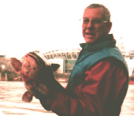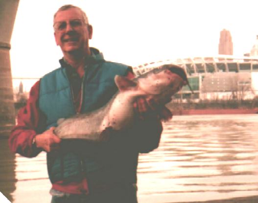 FEBURARY 20,2004! The weather man said temperature in upper 50's and Ohio river was at 28 feet. At 07:45 this morning I got my first line in the water for the 2004 season! The current of the river was stronger than I expected so had to cast from the back of a raised dock. I had 2 poles, one rigged deadline and one with a bobber set to 25 ft. I used old bluegill from last Fall on the deadline rig. On the bobber I used a chunck of grilled steak! After 20 mins I re-baited my last small bluegill on the deadline.
