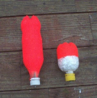 The final touch is paint the bottom half of the bottle with a florescence paint. Whatever color you like just so you can spot the bober after a long cast. The bobber will NOT cast as far as a streamline bobber, but will do a good job of showing a bite.